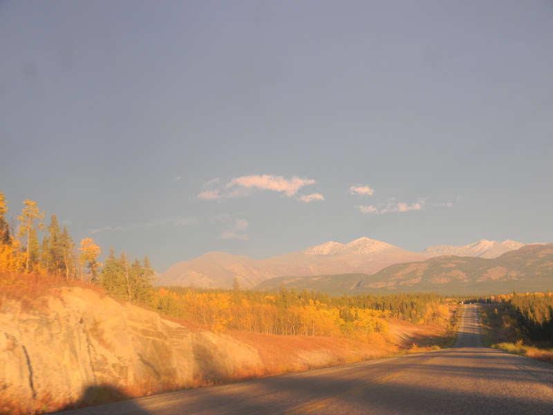 We continued on our way with the road following the Laird River. There was the same golden yellow colors that we were use to. We would spot a buffalo here and there.